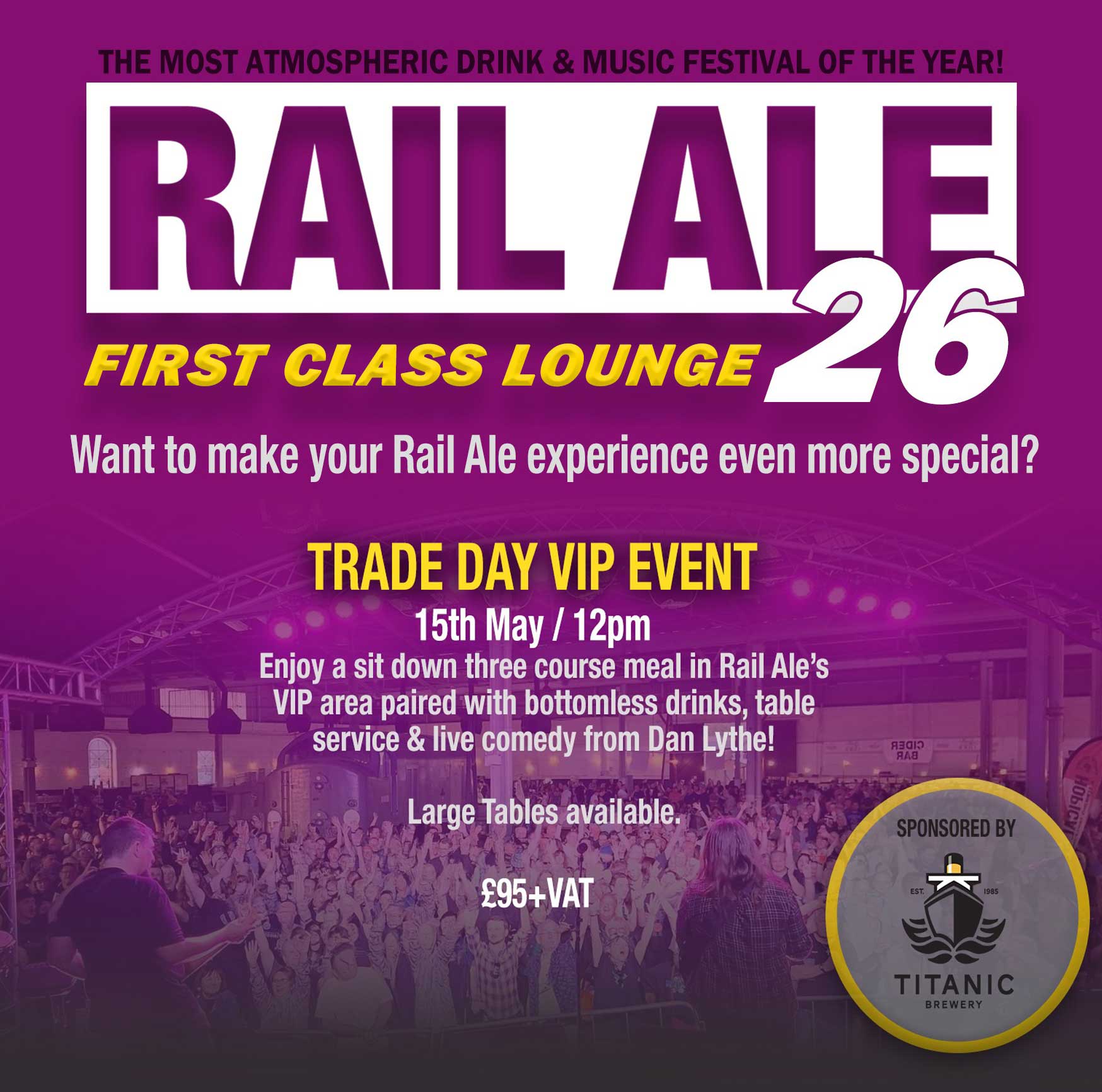 An opportunity to meet other brewers, publicans and suppliers to the trade in the unique atmosphere of the Rail Ale Festival. Applications for trade session tickets should be emailed to tradesession@railalefestival.com.